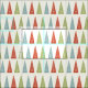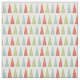 Esta tela estampada es perfecta para hacer regalos a los Navidades y decoración casera. Este material tiene ilustraciones elegantes y modernos de árboles navideños en rojo, verde claro y azul claro sobre un fondo color crema claro.