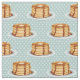 Un patrón de deliciosos panqueques apilados en platos, cubiertos de jarabe de arce y rodeados de polkadots. El color de fondo es un bonito verde menta. Este divertido y sabroso patrón de panqueques es un gran regalo para los amantes de los pies y de los panqueques.