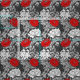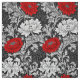 La tela en un vintage William Morris, arte Nouveau, impresión floral de crisantemos estilizados, digital aumentó y coloreó, en las sombras de los gris plateados /grey y del blanco, acentuadas con de color rojo oscuro, en un fondo oscuro del gris del grafito