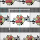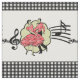 Este diseño de tela tiene una pareja de danza cuadrada vestida con trajes rojos con símbolos musicales detrás de ellos. El color de fondo es blanco con un borde de comprobación en blanco y negro. Este diseño está disponible en otros diseños y tamaños.