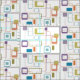 Ponga al día su proyecto con este modelo cuadrado moderno con un ambiente retro. Los colores son tintes del azul de pavo real, de la mandarina, de la aceituna, y de la púrpura.