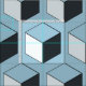 Elija su color de fondo (defectos a azul claro). El adorno tridimensional de un bloque inclinado, con un blanco lateral, un negro, y remata el color de fondo. Los bloques se alinean en líneas escalonadas con el espacio entre cada uno.