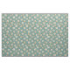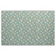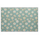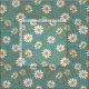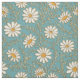 Patrón lindo de margaritas blancas y amarillas con acentos de hoja dorada y tallo sobre un fondo verde azulado/azul.
