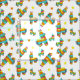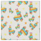 A los niños les encantará esta tela blanca con un mono de pinata a rayas y un patrón de estrellas