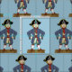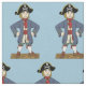 Un muchacho vestido de pirata lleva un largo abrigo y un gorra pirata negro adornado con cráneo y huesos cruzados en esta obra original de Richard H. Fay.