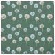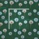 Esta tela o material presenta un patrón de fotos de dientes de león o relojes de león en blanco y verde limón sobre un fondo verde oscuro.