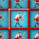 El baile de los pares podía ser latino, salsa, disco impreso en un fondo azul con un diseño del starburst y franja roja.