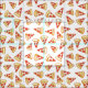 Este modelo pizza-temático moderno de la diversión es apenas la cosa para cualquier amante de los salchichones. Modelo inconsútil a mano de las rebanadas caseosas de la pizza de salchichones impresas en tela de algodón cepillada.