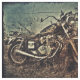 La imagen creativo corregida de la motocicleta con una sensación apenada tiene un fondo de la frontera azul y negra descolorada. Adaptado para acolchar o hacer a mano.