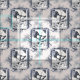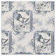 Una impresión del gallo del país. Magnífico para esos bumpkins del país que como un país sienten. Sensación rústica en un fondo del azul gris en una tela de algodón.