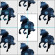 Arte de caballos azules en tela. Hermoso diseño de una silueta de caballo corriendo.