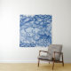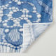 Tela de encaje azul sobre fondo blanco. Tela de encaje de tul africano elegante de poliéster con flores de largo completo para su diseño. La textura. Fondo. Patrón