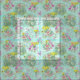 Los campos de flores, con un fondo floral suave y verde pálido, están recubiertos de colores amarillos, rosas, rojos, verdes y blancos para una decoración dulce.