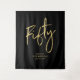 Esta tapicería moderna es perfecta para una fiesta de cumpleaños 50 chic en negro y dorado. Tus invitados disfrutarán tomando una foto con este telón de fondo sofisticado y recordarán tu día especial. El diseño cuenta con un "Cincuenta" en pincel dorado con texto personalizable. Puedes personalizar el nombre, evento y fecha en la parte inferior de la tapicería. ¡Gracias!