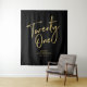 Esta tapiz moderna es perfecta para una fiesta de cumpleaños 21 chic negro y dorado. Tus invitados disfrutarán tomando una foto con este telón de fondo sofisticado y recordarán tu día especial. El diseño cuenta con un pincel dorado "Veintiuno" con texto personalizable. Puedes personalizar el nombre, evento y fecha en la parte inferior del tapiz. ¡Gracias!