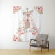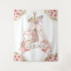 Tela de fondo para baby shower tribal de tipi con una adorable zorrita y tipi en un fondo floral de acuarela rosa y dorado. Esta gran tela de fondo de mesa para baby shower tribal de tipi y zorro se personaliza fácilmente con el texto que elijas.