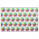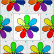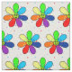 Un modelo tejado de una flor del arco iris en un fondo manchado colorido.
