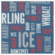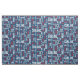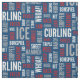 Tela que ofrece un modelo de términos que se encrespan en sombras del rojo, del blanco y del gris en fondo azul. Perfeccione para los bigudíes y las fans que se encrespan.