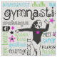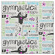 Tela de la tipografía de la gimnasia. Las porciones de palabras de la gimnasia rodean a este gimnasta adorable. Tiene estrellas decorativas. Los colores son brillantes en rosado, azul, y verde acentuar el negro.
