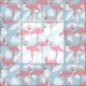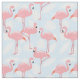 Tela de patrón de flamencos rosados. Los flamencos con hojas de palma blancas tropicales sobre fondo azul son perfectos para cualquier proyecto de artesanía.