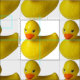 Tela de patrón de impresión de duques de goma amarillos. Decorar su casa o negocio con algodón de diseño personalizado o tela de lino.