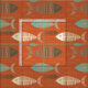 Utilice esta tela de pescado kitsch roja vintage para una amplia variedad de proyectos de costura. El patrón presenta un fondo rojo con peces esqueléticos marrones, turquesa y amarillos que nadan con la corriente.