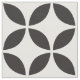 Tela de Petals en blanco y negro. Los pétalos de hoja elíptica negra enlosados forman círculos perfectos sobre un fondo blanco. Personalizar esta tela cambiando el color de fondo. Encontrar más patrones y productos en blanco y negro en www.zazzle.com/CandiCreations