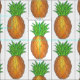 El tejido contiene filas de piñas tropicales, impresas sobre un fondo blanco. ¡Perfecto para la costura de verano!