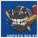 Tela adaptable del hockey sobre hielo por la yarda con SU TEXTO y sus COLORES de la decoración del sitio del hockey. LLAMADA Linda: 239-949-9090, AYUDAR le para realizar cambios a los colores de fondo y de texto, al tamaño del duende malicioso de hockey divertido o a cambios de diseño. Vea las INSTRUCCIONES abajo de cambiar el azul y el blanco a sus colores. Mecanografíe adentro SU NOMBRE o TEXTO o suprima el texto. LLAME a Linda en: 239-949-9090.