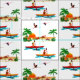Un par que busca de la aventura kayaking en el trópico se ofrece en esta tela brillante colorida. Inspirará a una variedad sin fin de proyectos que recuerde uno los días de verano felices pasados en la playa o los tiempos cavorting en las islas.