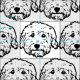 Caras adorables del perro del Doodle en blanco y negro.