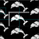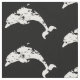 Cuidada tela de patrón de delfines saltando en blanco y negro. Material de temática costera para uso artesanal o para proyectos de costura.