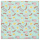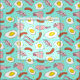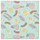 Tela azul claro con un divertido patrón de comida de huevos para el desayuno frito, bacon y salchichas