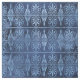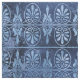 Este diseño de inspiración art decó y griega tiene un fondo azul angustiado con ventiladores y rollos de color azul claro.