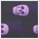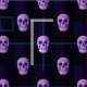 Calavera gótica cabeza neón azul violeta del tejido de coser muerto. Guay, moderno, espeluznante, aterrador. Excelente para tus proyectos de costura de Halloween. Busca productos coincidentes en mi colección de tiendas. Derechos de imagen de Marg Seregelyi Photography.