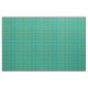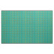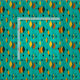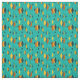 Esta tela tiene un diseño atómico moderno de diamantes de mediados de siglo, y estallidos en un campo de turquesa.