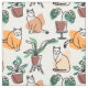 Tela Dibujo en línea de gatos y flores