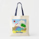 Dinosaurio y tote azules del bolso de Vulcano de las estrellas. Tote colorido del bolso del juguete de Dino con un pequeño dibujo animado azul lindo Dino del Diplodocus en una tierra prehistórica de la Edad de Piedra con las montañas, los árboles y las estrellas tirando vulcano con las nubes blancas en un cielo azul. ¡Cambie "su nombre" en cualquier nombre que usted quiera personalizar su bolso especial único del dinosaurio con su nombre! Este producto de Dino del dulce es completamente adaptable, añade sus textos e imágenes. ¡Un gran bolso del dibujo animado del dinosaurio a poner en sus juguetes o para utilizarlo de nuevo a escuela!