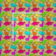 Esta tela tiene un diseño de novedad de dinosaurios dispersos por todo el diseño.