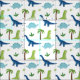 Los aficionados a los Dinos seguramente RAWR estarán encantados cuando reciban esta adorable tela de dinosaurio con T-Rex, brachiosaurus y estegosauro. Este patrón de dinosaurios incluye palmeras, huellas de dino, huesos y helechos prehistóricos.