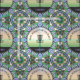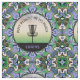 Colorido diseño de mandala con silueta de cesta de golf de disco y cadenas, recordando a los jugadores "Putt Plastic In Its Place".