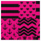 Patrones mixtos rosados y negros Diseño de 16 ilustraciones de diseño diferentes de Fleur-de-lis, coronas, corazones, puntos de polka, llave griega, abstracto irregular, gallo, árboles, Harlequin, rayas, cheque, paraguas, ancla, chevron, blob y diseños de ilustracion floral de flores.