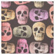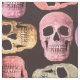 Patrón negro verde verde naranja amarillo pálido del cráneo gótico. Guay fabrica material de coser. Cultura moderna del arte pop. Tejido de diseño de Halloween psicodélico y abstracto. Derechos de imagen de Marg Seregelyi Photography.