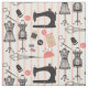 Un diseño con una temática de costura tan adorable con una máquina de coser vintage, bobinas de algodón, botones, maniquíes de vestir, horquillas y horquillas, un adorable patrón para la gente astuta y cualquiera para coser.