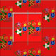 Diseño floral ojibwe con tela de fondo rojo de Ayasha de moda Ayasha.