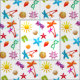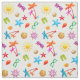 Coser y crear tela con un diseño de patrón de verano. Los colores tropicales brillantes componen esta divertida colección de conchas marinas, estrellas de mar, palmeras, gafas de sol, chanclas y más. Elija cualquier color de fondo, en algodón, lino, twill o déjelo neutral.