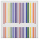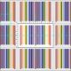 La tela geométrica elegante ofrece un diseño del código de barras con dos arco iris hechos de pares de rayas coloreadas que correspondan a los números del UPC. Consiguiendo a mi friki encendido, los números corresponden a las letras en "arco iris" para hacer un arco iris doble. Puesto que los códigos de barras son solamente 12 números de largo, dejo el "r" ser representado por el comienzo rojo y las rayas medias. La secuencia comienza en la izquierda con rojo, anaranjado, amarillo, verde, azul, el añil, y la violeta. Dos rayas de servicio rojo como divisor en el centro y entonces los colores van de violeta de nuevo al rojo para una mirada equilibrada.