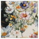 Dog lover's sewing and craft fabric. Cream color background with yellow labs, Bernese mountain dogs, and cute Corgis who are surrounded by stems of colorful wildflowers. The pattern image is large in this design.