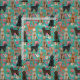 Tela Doodles dorados turquesa floral vintada