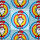 ¡Mira este divertido gato en el gráfico Gorra con coloridos anillos concéntricos!